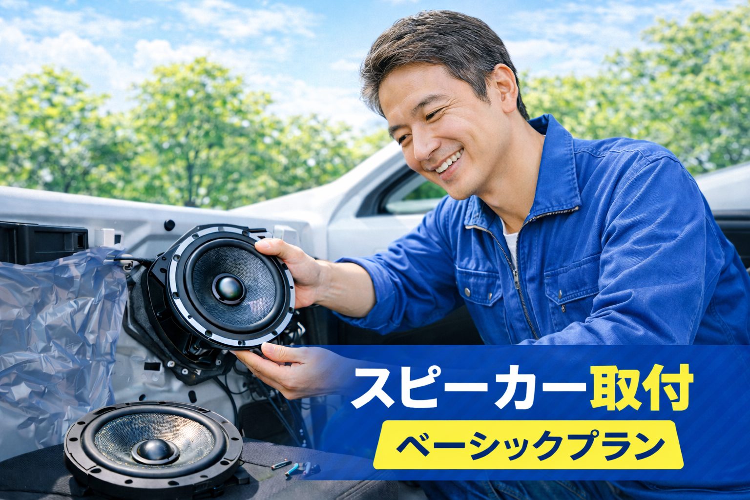 見た目を変えずに施工できるプランとなっていて、お客様の音の好みに応じたスピーカーを各種プランからお選びいただけます。