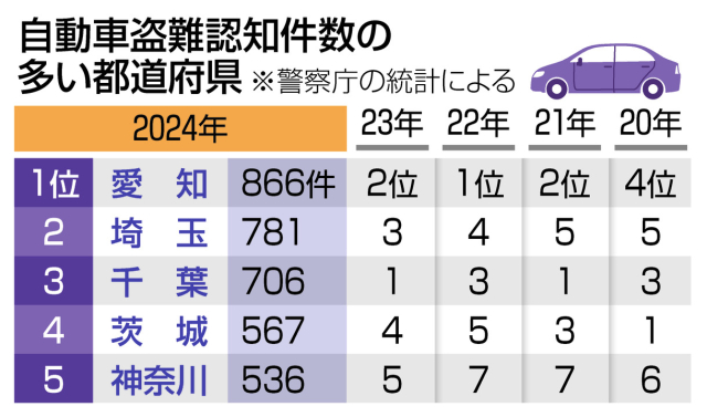 埼玉県は 2022年 2023年は ワースト4位とそれでも盗難件数の多い県でしたが